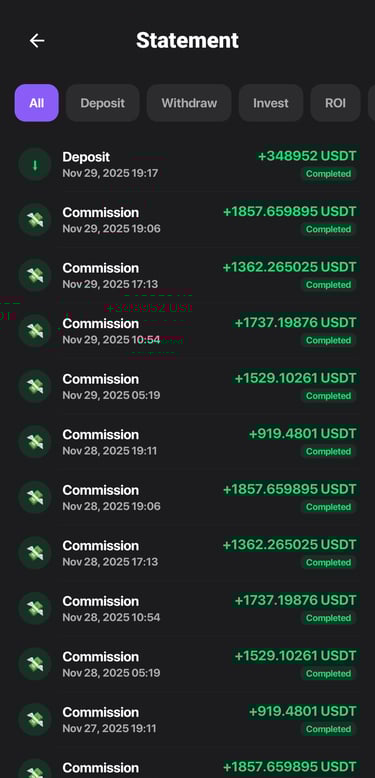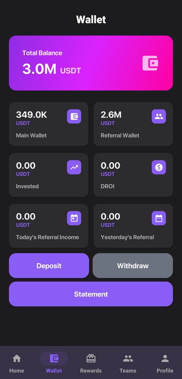 Once Bitvia’s AI models secure profitable outcomes, returns are processed and allocated back into the system. Users receive their ROI directly in their Main Wallet as per their chosen plan, while eligible referral and team-based earnings are distributed simultaneously. The entire cycle is automated, transparent, and fully trackable inside the app.