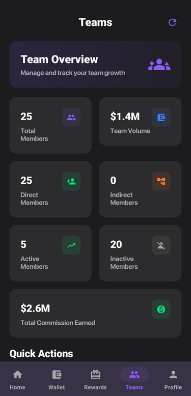 See everything you earn - Real-time ROI, Reward and Team Insights.