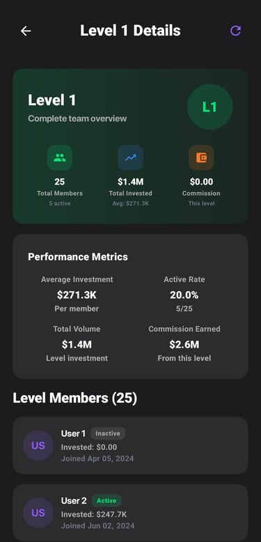 Build your network up to 50 levels and unlock additional income streams through our structured commission model.