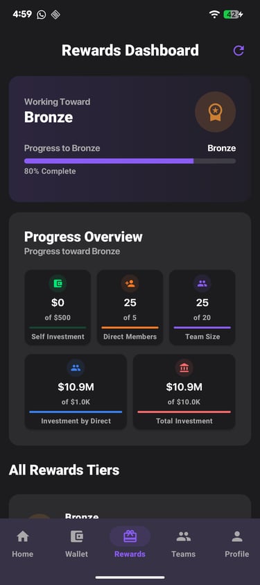 See everything you earn - Real-time ROI, Reward and Team Insights.